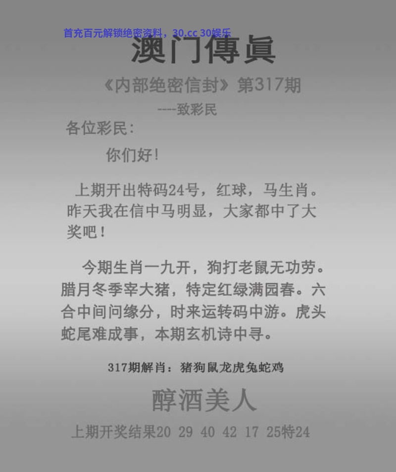 澳门317期传真《醇酒美人》